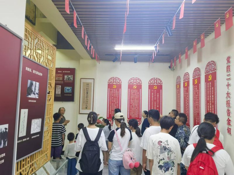 在原徐州書畫院書記、副院長晁岱衛(wèi)同志的帶領(lǐng)下,青少年兒童們參觀了蘇悅黨史陳列館。通過新四軍四師在邳睢銅地區(qū)戰(zhàn)斗的史料圖片、一級八一勛章、一級解放勛章、一級獨(dú)立自由勛章等蘊(yùn)含歷史內(nèi)涵的實物陳列品,直觀了解新四軍將士用鮮血和生命鍛造的偉大的新四軍精神;通過講述黨的光輝歷程,分享紅色故事,厚植愛黨、愛國、愛人民的情懷,讓紅色基因代代相傳。