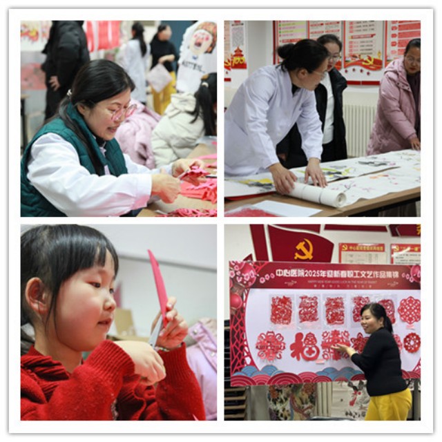 往大廳內(nèi)部走去,便來(lái)到了第二個(gè)區(qū)域,這里正在進(jìn)行剪紙、繪畫和書法才藝展示。參與活動(dòng)的不僅有職工,還有職工家屬及孩子們。他們個(gè)個(gè)技藝精湛,穩(wěn)穩(wěn)地坐在座位上,手持剪刀、畫筆、毛筆等工具,動(dòng)作嫻熟,如行云流水般。片刻之間,一幅幅精美的雙魚戲珠、春回大地、彩蝶雙飛等剪紙,一幅幅山水花鳥等畫作,一個(gè)個(gè)形態(tài)各異的福字便呈現(xiàn)在大家眼前,引得眾人陣陣驚嘆。