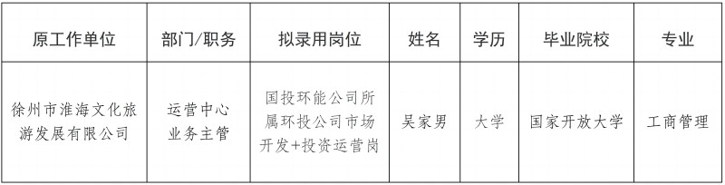 徐州國投環(huán)能公司所屬環(huán)投能源科技公司公開招聘擬錄用人員名單公示