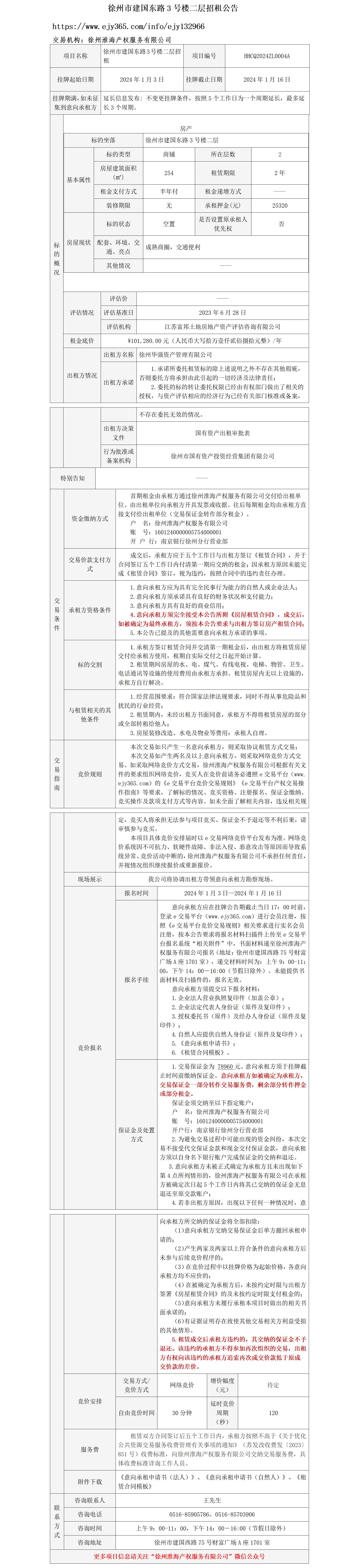 徐州市建國東路3號樓二層招租公告