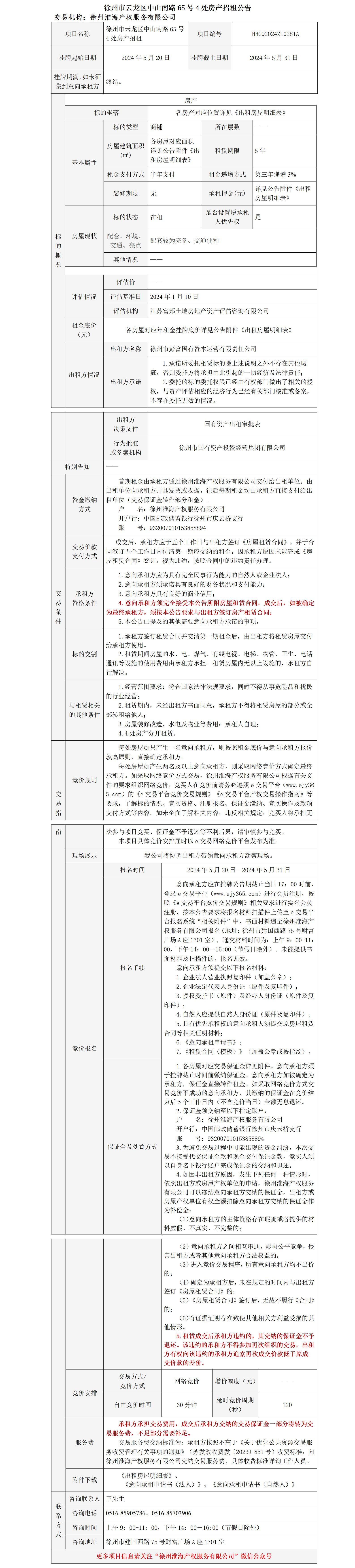 徐州市云龍區(qū)中山南路65號(hào)4處房產(chǎn)招租公告