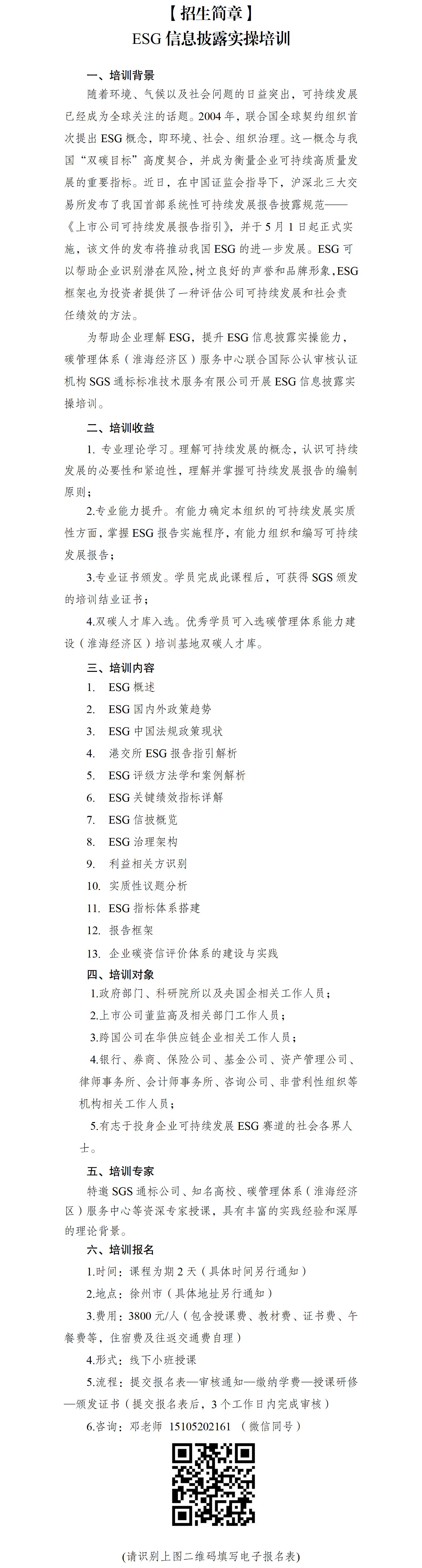 【招生簡章】ESG信息披露實操培訓(xùn)