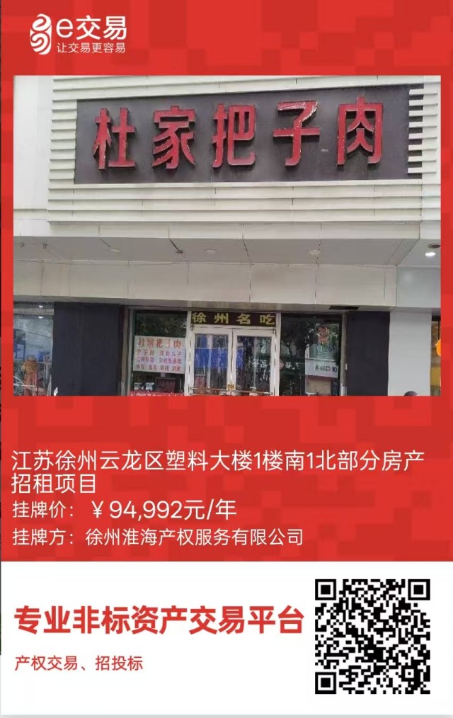 江蘇徐州云龍區(qū)塑料大樓1樓南1北部分房產(chǎn)招租公告