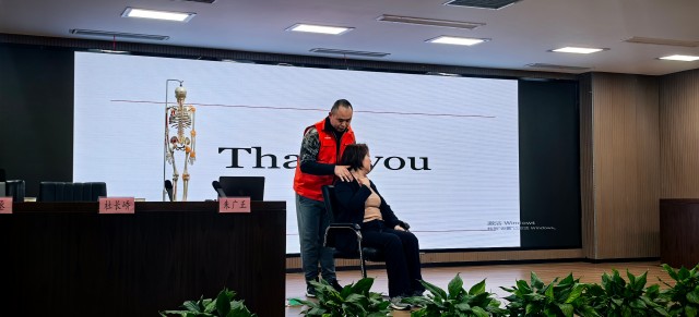 國(guó)體公司邀請(qǐng)專業(yè)運(yùn)動(dòng)康復(fù)師授課,介紹了長(zhǎng)年坐辦公室容易出現(xiàn)的肩頸、腰椎等問(wèn)題,現(xiàn)場(chǎng)演示了頸椎伸展拉伸、“擊天鼓”“貓牛式”、YWT激活訓(xùn)練等緩解頸椎問(wèn)題的動(dòng)作與按摩手法,對(duì)現(xiàn)場(chǎng)職工提出的問(wèn)題進(jìn)行了逐一解答,并進(jìn)行了現(xiàn)場(chǎng)評(píng)估與手法治療。