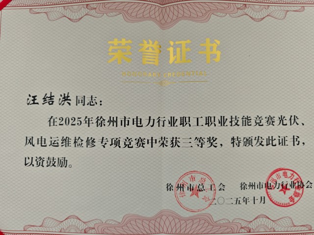 近日,由徐州市總工會和徐州市電力行業(yè)協(xié)會主辦、華潤電力徐州公司承辦的2025年徐州市電力行業(yè)職工職業(yè)技能競賽光伏、風(fēng)電運維檢修專項競賽圓滿落幕,國爍公司派員參加并喜獲三等獎。本次競賽分為理論和現(xiàn)場實操兩部分,試題涵蓋新能源電站運行維護、設(shè)備檢修和故障處理等全方…