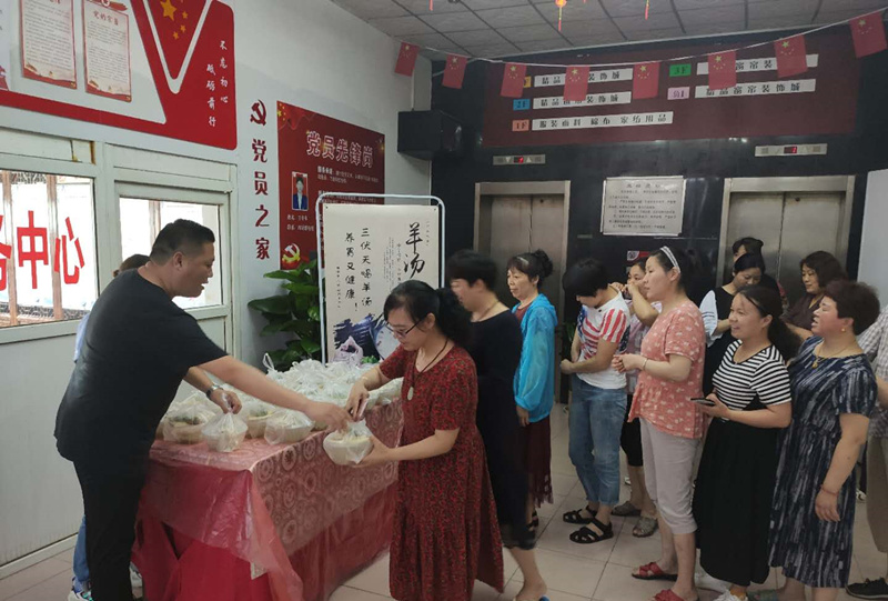 面對新冠疫情造成低迷的招商環(huán)境,華強資產(chǎn)公司在堅持做好防疫工作的同時,要求各大專業(yè)市場主動出擊、積極迎難而上,提高服務(wù)意識、改善營商環(huán)境,為業(yè)戶業(yè)主做好服務(wù)。庚子年7月16日入伏,華強黨總支物華黨支部特別推出了“伏天喝羊湯,物華送健康”活動。