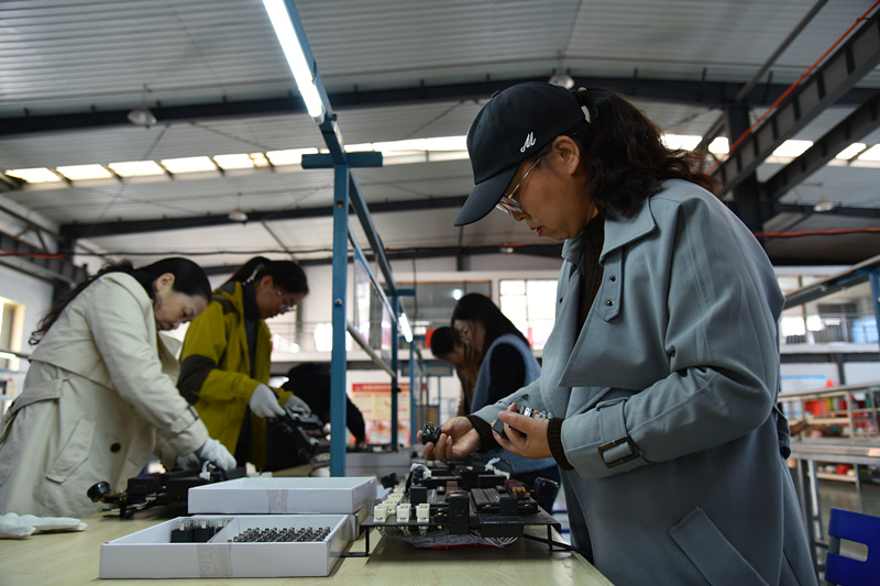 活動(dòng)中,黨員同志們首先參觀了車(chē)間和各個(gè)生產(chǎn)線,認(rèn)真聆聽(tīng)新亞科技副總經(jīng)理代文全為大家講解公司產(chǎn)品、生產(chǎn)流程和工藝等情況,了解新亞科技主要產(chǎn)品,傾聽(tīng)關(guān)于“千瘡百孔”操作板、自制測(cè)試臺(tái)等生產(chǎn)小故事,感受新亞科技自強(qiáng)不息、迎難而上的攻關(guān)精神。隨后,突擊隊(duì)員們分成兩隊(duì),男同志們?cè)谛聛喛萍级麻L(zhǎng)謝珉的帶領(lǐng)下組裝貨架,女同志們?cè)谛聛喛萍伎偨?jīng)理周佩的帶領(lǐng)下參與工作流程,車(chē)間里氣氛熱烈,大家邊問(wèn)邊學(xué)邊做,遇到貨架組裝不平、膠帶纏繞過(guò)松、保險(xiǎn)絲按插不到位等小問(wèn)題,就在技術(shù)能手的幫助下調(diào)整改進(jìn),通過(guò)不斷總結(jié)經(jīng)驗(yàn),突擊隊(duì)員們逐步從生疏到上手,最終圓滿完成工作任務(wù),內(nèi)心充滿勞動(dòng)的喜悅。