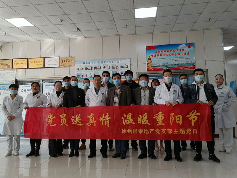 10月23日上午,正值傳統(tǒng)佳節(jié)重陽節(jié)來臨之際,國泰地產(chǎn)黨支部開展“黨員送真情,溫暖重陽節(jié)”主題黨日活動,展現(xiàn)“尊老、愛老、敬老、孝老”的團隊精神風(fēng)貌。國泰地產(chǎn)黨支部書記、董事長吳作峰帶隊前往泉山區(qū)城南社區(qū),慰問徐州市書香老年服務(wù)中心的失能老人。