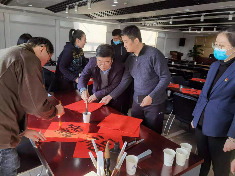 為傳承中華優(yōu)秀文化,下午15時(shí),“丹青送福寫春聯(lián),紅紅火火過大年”活動火熱舉行?;顒蝇F(xiàn)場墨香滿廳,“喜居寶地年年旺,福照家門事事興”“新春福旺鴻運(yùn)開,佳節(jié)吉祥如意來”,一行行俊逸的書法,一句句真誠的祝福,既寫出了廣大職工對新年的期盼,也描繪了大家對美好生活的憧憬和向往,現(xiàn)場的氣氛十分熱鬧。