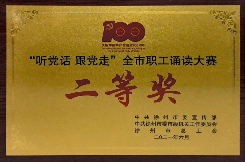 在市總工會(huì)聯(lián)合市委宣傳部、市委市級(jí)機(jī)關(guān)工委、市全民閱讀辦共同舉辦“永遠(yuǎn)跟黨走·建功新時(shí)代”慶祝建黨100周年系列活動(dòng)中,集團(tuán)公司榮獲系列活動(dòng)優(yōu)秀組織獎(jiǎng)。集團(tuán)公司選送的原創(chuàng)配樂(lè)詩(shī)朗誦《光輝的旗幟》榮獲市總工會(huì)“聽(tīng)黨話·跟黨走”全市職工誦讀比賽二等獎(jiǎng)!