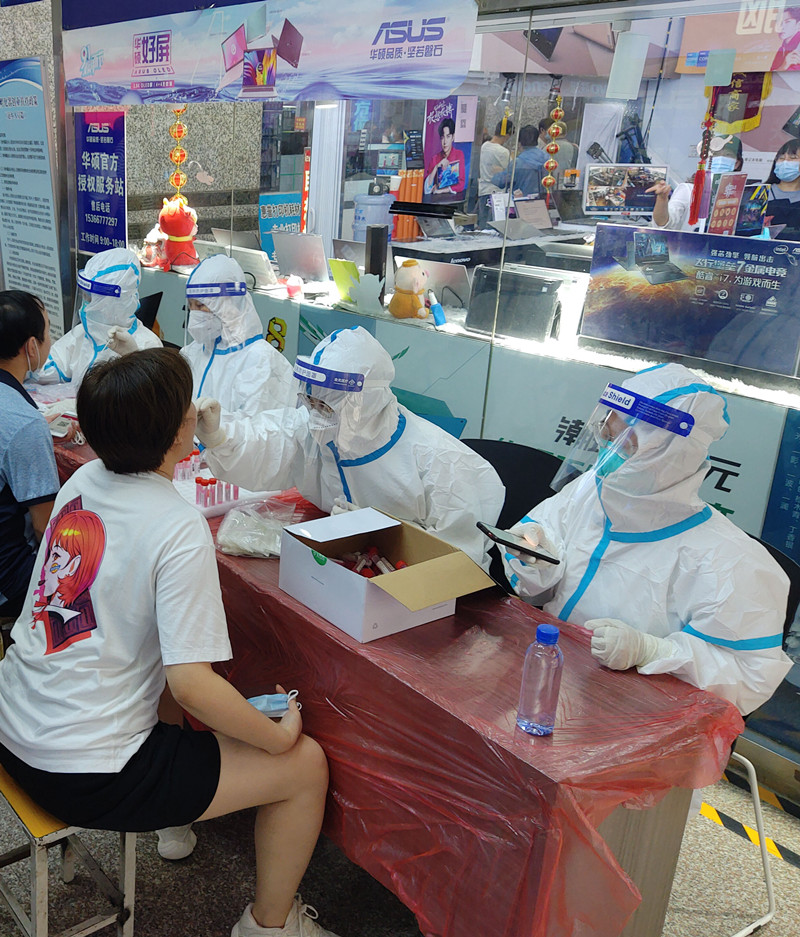 為貫徹落實徐國投疫防辦〔2021〕1號關(guān)于加強(qiáng)常態(tài)化疫情防控工作的通知,強(qiáng)化新冠疫情防控工作,筑牢海云大廈業(yè)戶的健康“防護(hù)墻”,海云公司第一時間與云龍區(qū)商務(wù)局及云龍區(qū)衛(wèi)生防疫站進(jìn)行聯(lián)系,8月3日,在海云大廈現(xiàn)場對所有業(yè)戶及從業(yè)人員約700人進(jìn)行了全員免費(fèi)核酸檢測。