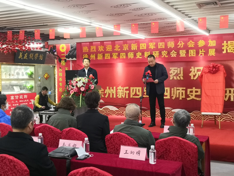 下午2點(diǎn),揭牌儀式在徐州古玩城正式舉行。原國(guó)務(wù)院副總理鄧子恢之女鄧小燕、原中國(guó)人民解放軍總參謀長(zhǎng)、中共中央書(shū)記處書(shū)記黃克誠(chéng)之子黃旭、原中國(guó)人民解放軍總政治部主任、中共中央軍委常委韋國(guó)清之子韋肖毅等老一輩革命家、新四軍的后代參加了本次活動(dòng)。