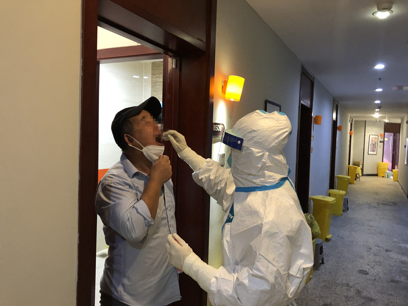 每入駐一名境外人員,工作組要進(jìn)行人員接駁,入隔宣教,信息采取、錄入、上傳,健康監(jiān)測(cè),標(biāo)本采樣和呈送,清潔消毒,廢棄物回收和處理,終末消毒等防控工作,以及送餐供應(yīng),各項(xiàng)報(bào)表,費(fèi)用管理,物資管理和供應(yīng),人文關(guān)懷,錄像監(jiān)測(cè),客房管理等后勤服務(wù)工作。事無(wú)巨細(xì),缺一不可。由于臨近春節(jié),隔離點(diǎn)接待境外人員很多,他們各自情況不同,入駐時(shí)間不分早晚。工作組不分白天黑夜處于工作狀態(tài),每天夜里都要迎接隔離者,一天休息不足6個(gè)小時(shí),基本上沒(méi)有好好休息過(guò)一個(gè)夜晚。每天都是超負(fù)荷在工作,但他們憑著強(qiáng)大的信念,一直保持著昂揚(yáng)的斗志。