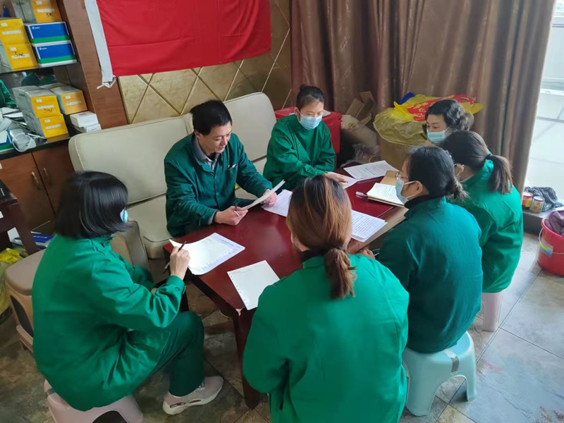 由于隔離點(diǎn)防控工作首次全部由醫(yī)務(wù)人員承擔(dān),沒(méi)有經(jīng)驗(yàn)可循,進(jìn)入隔離點(diǎn)后,工作中人員在點(diǎn)位長(zhǎng)汪儲(chǔ)送帶領(lǐng)下,立即召開(kāi)工作會(huì)議,探討工作方案,梳理工作流程,分配工作任務(wù)。大家各領(lǐng)任務(wù),各司其職,擔(dān)起了隔離點(diǎn)所有隔離人員的防控及服務(wù)工作。