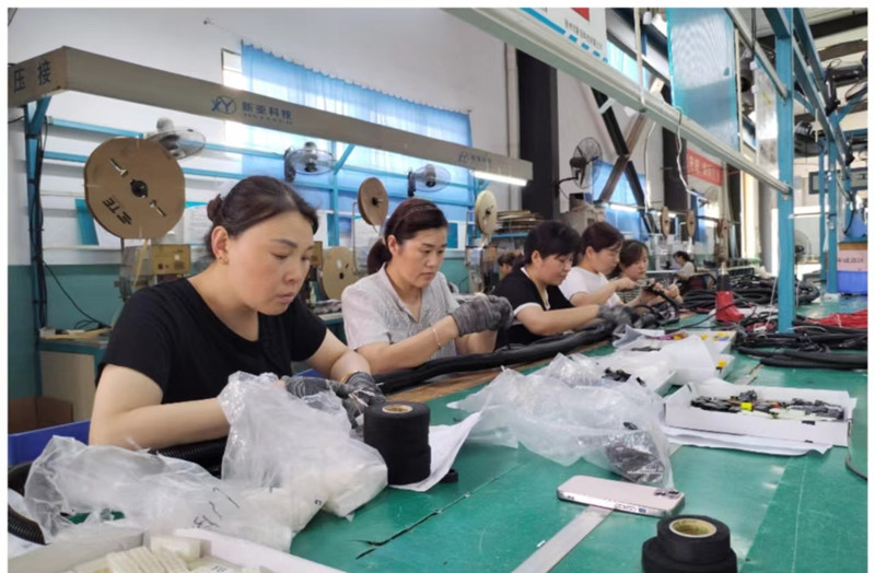 正值大暑節(jié)氣,然而有這么一群人,不懼酷暑熱浪,全力以赴趕制著一批準備出口的新能源純車用線束訂單,他們就是新亞“趕工人”。