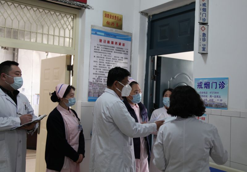 督查組先后深入門診大廳、病區(qū)、戒煙門診、母嬰室、醫(yī)院東廣場等處,認(rèn)真查看了門診大廳志愿者服務(wù)、健康宣教、院內(nèi)環(huán)境衛(wèi)生、車輛管理、公益廣告設(shè)置、電子大屏播放、戒煙門診及母嬰室建設(shè)等情況,并翻閱了病區(qū)及門診相關(guān)臺賬,對發(fā)現(xiàn)的亮點(diǎn)工作給予肯定,針對不足之處提出具體整改意見。督查過程中,督察組指出,要加強(qiáng)門診大廳就醫(yī)人員“一米線”秩序管理、完善健康教育臺賬、完善禁煙標(biāo)識張貼等,鼓勵(lì)制作“兩城一院”同創(chuàng)宣傳專題片。