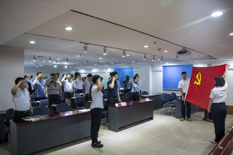 全體年輕干部肅立,舉起右手,面向黨旗莊嚴宣誓?!拔抑驹讣尤胫袊伯a(chǎn)黨,擁護黨的綱領(lǐng),遵守黨的章程……隨時準備為黨和人民犧牲一切,永不叛黨?!卞P錚誓言擲地有聲,鏗鏘字句響徹會場。喚醒了年輕干部入黨時的初心,激發(fā)了年輕干部進一步堅定理想信念、立足崗位建功的壯志豪情。