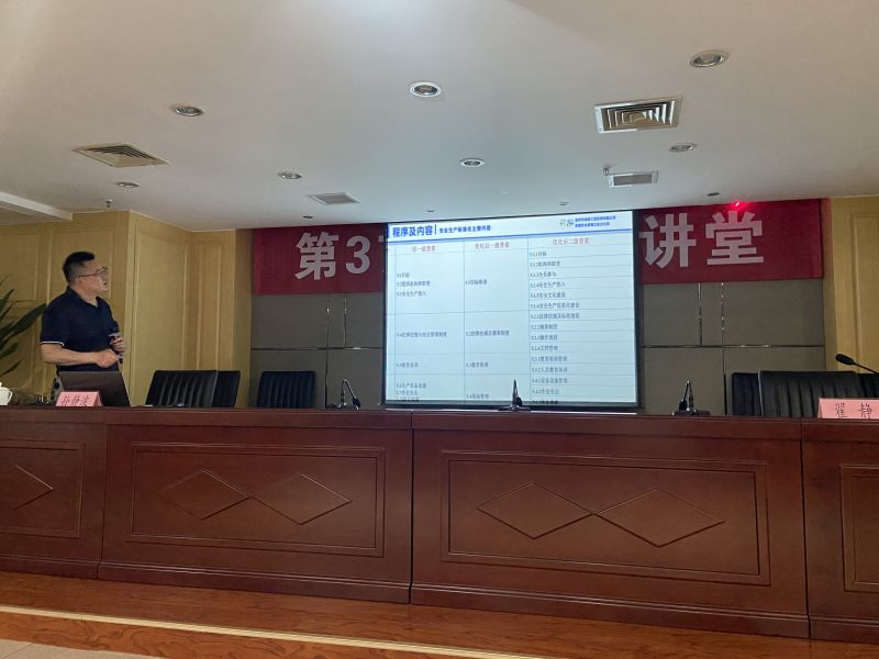 培訓(xùn)會上,孫靜波圍繞安全生產(chǎn)標(biāo)準(zhǔn)化的發(fā)展與現(xiàn)狀、特點(diǎn)和作用、程序和內(nèi)容、體會與總結(jié)及集團(tuán)公司“三位一體”工作對安全生產(chǎn)標(biāo)準(zhǔn)化創(chuàng)建的推動作用五個板塊進(jìn)行細(xì)致講解,分享了安全生產(chǎn)標(biāo)準(zhǔn)化創(chuàng)建過程中常見的問題、解決思路和安全生產(chǎn)標(biāo)準(zhǔn)化各構(gòu)成要素等內(nèi)容,并回答參會人員提問。