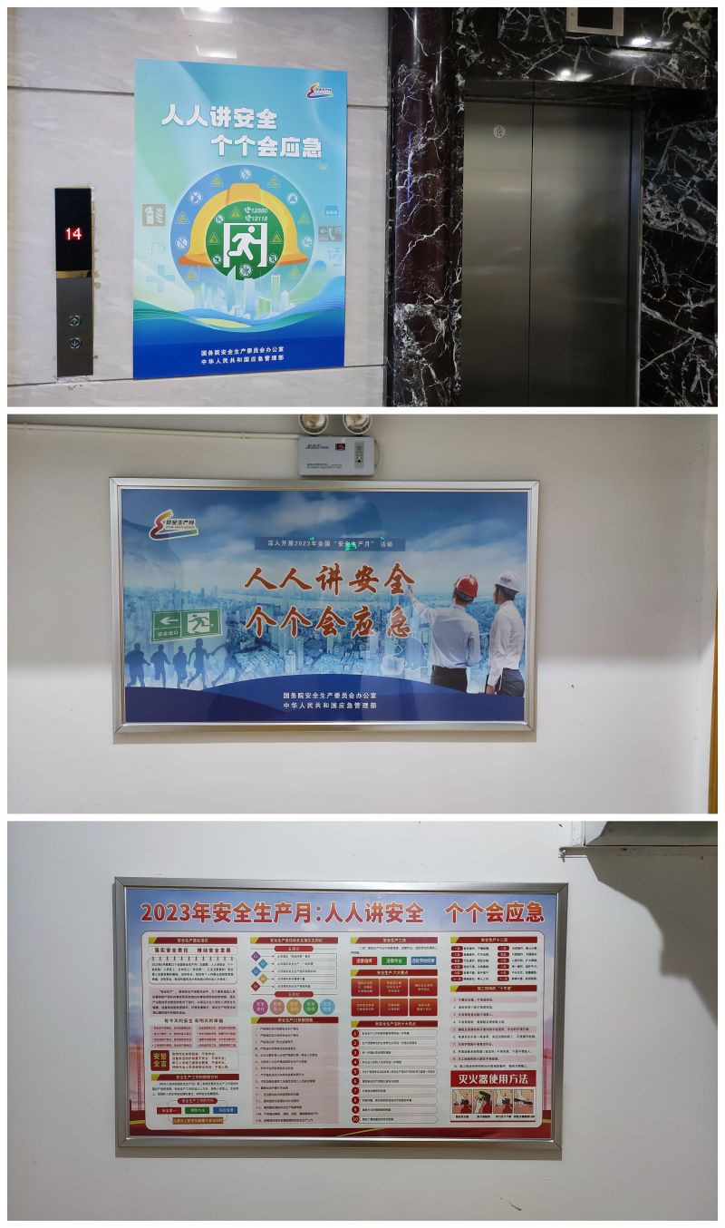 通過(guò)安全宣傳展板、安全宣傳橫幅、電子屏幕等方式,在集團(tuán)公司大樓內(nèi)營(yíng)造“安全生產(chǎn)月”活動(dòng)氛圍。