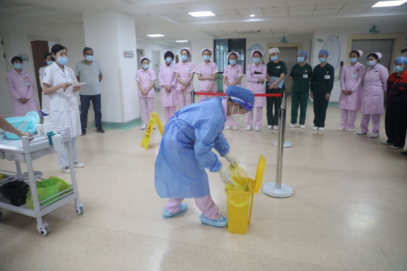 為進(jìn)一步規(guī)范醫(yī)療廢物管理,提高醫(yī)務(wù)人員及保潔人員在發(fā)生醫(yī)療廢物意外遺撒、泄露后的應(yīng)急處置能力,避免因醫(yī)療廢物泄露意外事件導(dǎo)致人身傷害和環(huán)境污染事故的發(fā)生,7月20日下午,徐州澳洋華安康復(fù)醫(yī)院開展醫(yī)療廢物遺撒、泄露應(yīng)急處置演練活動(dòng)。此次演練由醫(yī)院感染管理科組織實(shí)施,醫(yī)務(wù)部、護(hù)理部、后勤保障部等部門密切配合,各臨床科室護(hù)士、保潔人員共同參加。