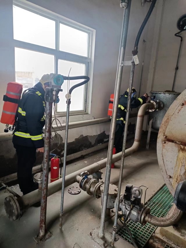 會后,為提高對特種設(shè)備爆炸事故的應(yīng)急響應(yīng)和處理能力,在國新公司鍋爐房開展“沼氣管道泄漏”應(yīng)急演練。