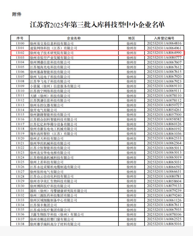 近日,電子研究院憑借深厚的研發(fā)積淀、突出的技術創(chuàng)新能力及規(guī)范的運營管理,以滿分100分的優(yōu)異成績,全指標達標、全維度領先,順利通過科技型中小企業(yè)認定,成功納入全國科技型中小企業(yè)信息庫,成為區(qū)域科技創(chuàng)新領域的標桿企業(yè)。