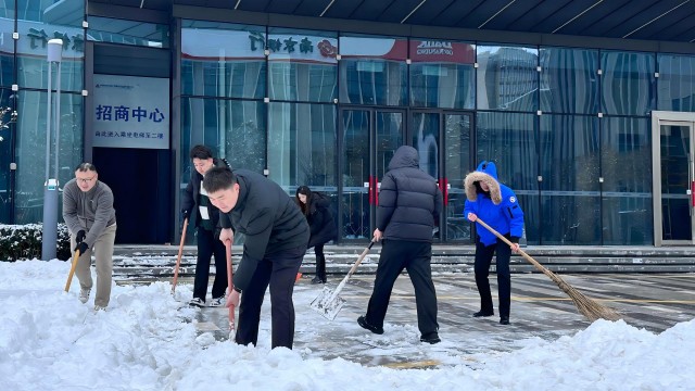 沖鋒在前,擔(dān)當(dāng)在風(fēng)雪一線熠熠生輝。能源板塊各電站職工頂風(fēng)冒雪,爭(zhēng)分奪秒清掃光伏區(qū)、風(fēng)機(jī)場(chǎng)設(shè)備積雪,運(yùn)用科技手段嚴(yán)密巡檢,以專業(yè)守護(hù)著能源“生命線”。遠(yuǎn)大、新亞等生產(chǎn)型企業(yè)自發(fā)清掃主干道與車間通道,為物流暢通與安全生產(chǎn)保駕護(hù)航。勞代中心黨員清晨便開(kāi)辟出辦事大廳的“安全通道”,擦亮服務(wù)民生窗口。港華燃?xì)馇嗄晖粨絷?duì)迅速啟動(dòng)應(yīng)急預(yù)案,分組奔赴全市各調(diào)壓站點(diǎn),冒雪檢查設(shè)備、清理積雪,以精準(zhǔn)操作守護(hù)著千家萬(wàn)戶的灶臺(tái)溫暖,切實(shí)履行“保民生、穩(wěn)供氣”的社會(huì)責(zé)任。成功大廈、科創(chuàng)園、國(guó)泰品山大廈、藍(lán)天商業(yè)公司等商場(chǎng)樓宇中,黨員先鋒隊(duì)快速清理出入口積雪,全力保障業(yè)戶出行便利與安全。醫(yī)院干部職工在門診大廳出入口、住院部通道等區(qū)域分工協(xié)作,用忙碌的身影開(kāi)辟出安全暢通的就醫(yī)通道,在皚皚白雪中彰顯溫暖明亮的醫(yī)者仁心。集團(tuán)本部大樓前,青年突擊隊(duì)聞令而動(dòng),輪流接力掃冰除雪,確保了公共區(qū)域通行無(wú)阻。從生產(chǎn)保供到服務(wù)前沿,國(guó)投人用“擔(dān)當(dāng)務(wù)實(shí)、團(tuán)結(jié)協(xié)作”的實(shí)際行動(dòng)在皚皚白雪中踏出了一條條用青春守護(hù)的熱忱征途。