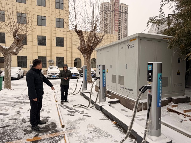 檢查組一行先后前往中煤第五建設(shè)公司職工醫(yī)院充電場站、喜來登酒店充電場站等地,現(xiàn)場對安全消防設(shè)施、進出口通道、充電車位積雪情況進行專項處理,逐一排查充電樁機體及線路因積雪覆蓋、低溫受潮可能存在潛在漏電隱患,并對極端天氣應(yīng)急處置預(yù)案工作部署進行實地落實。