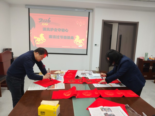 活動(dòng)中,黨員們結(jié)合崗位實(shí)際,現(xiàn)場創(chuàng)作并書寫廉政對聯(lián),以筆墨傳遞廉意,以初心堅(jiān)守底線。最后,全體黨員鄭重簽訂《2026年春節(jié)廉潔過節(jié)承諾書》,承諾嚴(yán)守廉潔紀(jì)律,筑牢思想防線。