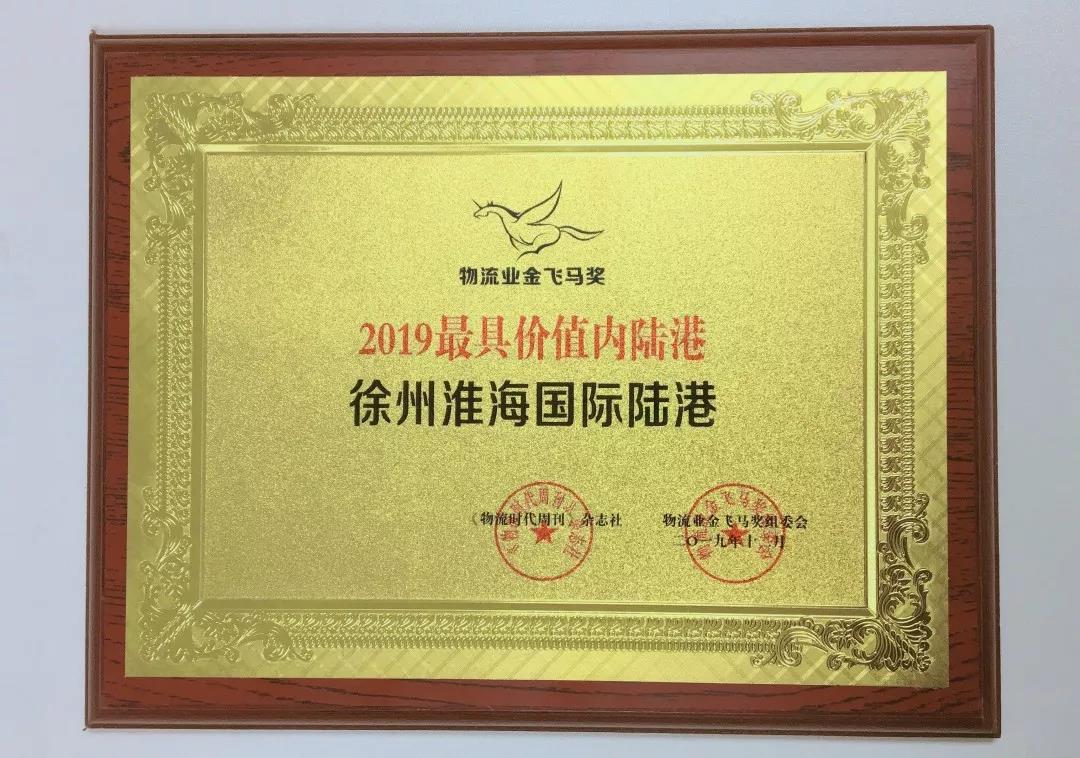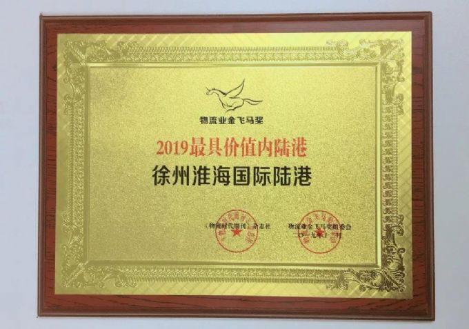 近期中國交通運輸協(xié)會城市物流分會組織了“2019最具價值內(nèi)陸港”網(wǎng)上評選活動,經(jīng)過網(wǎng)上投票評選和線下綜合評估,徐州淮海國際陸港發(fā)展有限公司榮獲“2019最具價值內(nèi)陸港”物流業(yè)金飛馬獎。