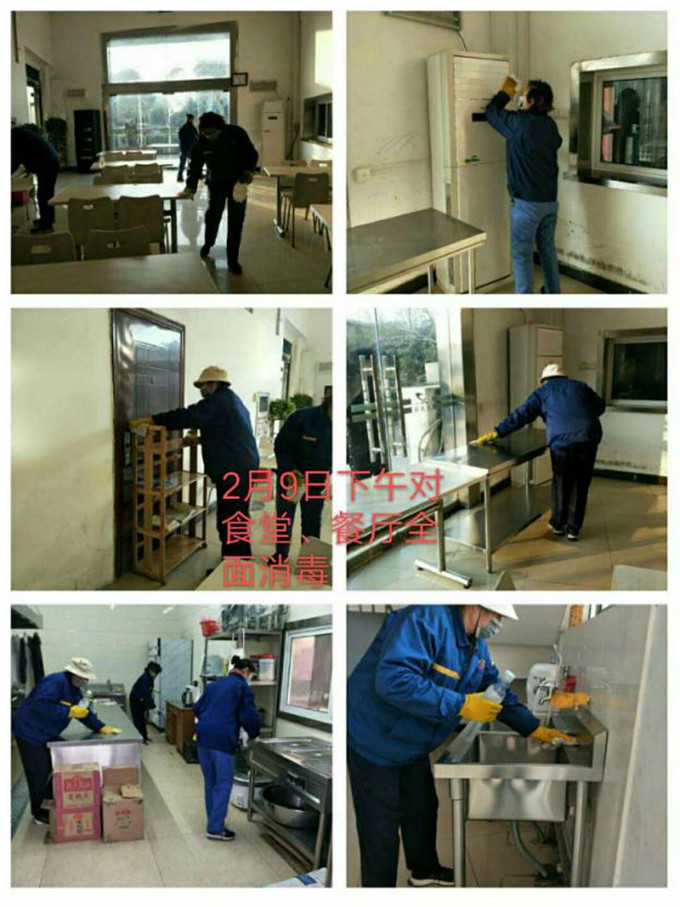 2.組織深度消殺。為積極推進(jìn)華強(qiáng)資產(chǎn)公司復(fù)工進(jìn)度,保障復(fù)工后工作人員的健康安全,全體保潔人員于日前對(duì)辦公場(chǎng)所、食堂、餐廳、衛(wèi)生間等區(qū)域進(jìn)行全方位、無(wú)死角的深度消毒殺菌作業(yè)。作業(yè)期間,保潔人員全程佩戴防護(hù)口罩及手套開(kāi)展工作,并保持消毒地點(diǎn)通風(fēng)。消毒結(jié)束后,各區(qū)域貼上已消毒標(biāo)識(shí),保質(zhì)保量完成了整體消殺任務(wù)。