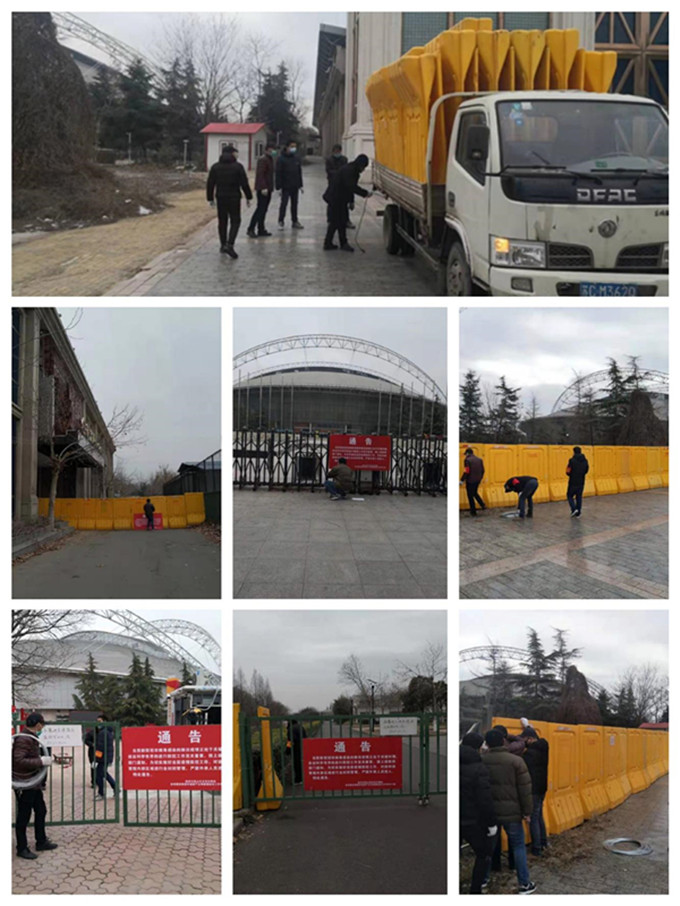 3.開(kāi)展外圍防疫。因特殊地理位置,華強(qiáng)資產(chǎn)公司委托成功物業(yè)公司承擔(dān)本部外圍防疫工作,經(jīng)過(guò)現(xiàn)場(chǎng)勘察制定了園區(qū)水馬封堵及復(fù)工園區(qū)防疫方案。在目前防疫工作嚴(yán)峻、水馬租賃困難及運(yùn)輸不便的情況下,通過(guò)各種途徑聯(lián)系到租賃方,于2月11日上午組織成功大廈工程人員、藝術(shù)館項(xiàng)目人員以及華強(qiáng)安防人員利用半天時(shí)間進(jìn)行突擊封堵,除主要出入口封堵外,還對(duì)在仔細(xì)排查園區(qū)發(fā)現(xiàn)的十余處人為損毀缺口進(jìn)行封堵處理,同時(shí)清退閑雜人員并張貼封園通告。