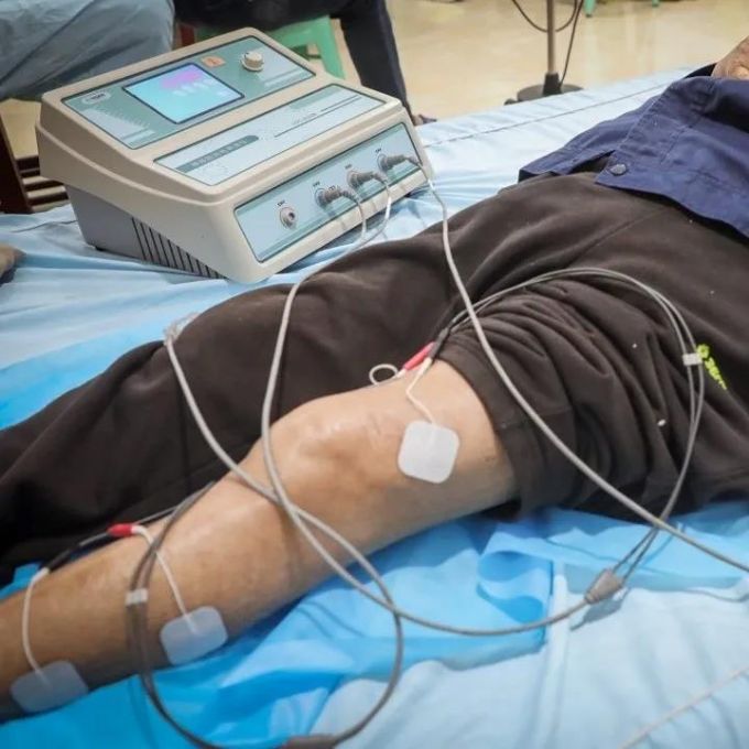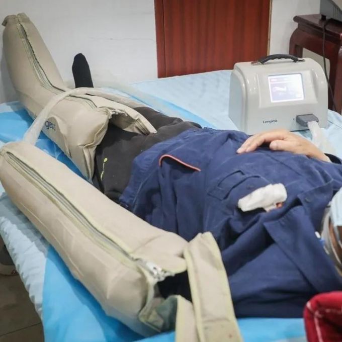 ▲老趙正在進(jìn)行氣壓、低頻脈沖電治療